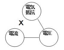 3つの中の一つ値を固定値(定数)にした時、残りの2つが比例するなら、それら2つを線で繋ぎます。残りの2つが比例でない(反比例)なら間にxを記入します。