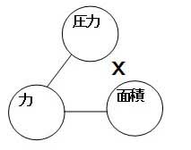 2つの円を繋ぐのに使った二本の線を「イコール」と見立て、比例でない(反比例)として